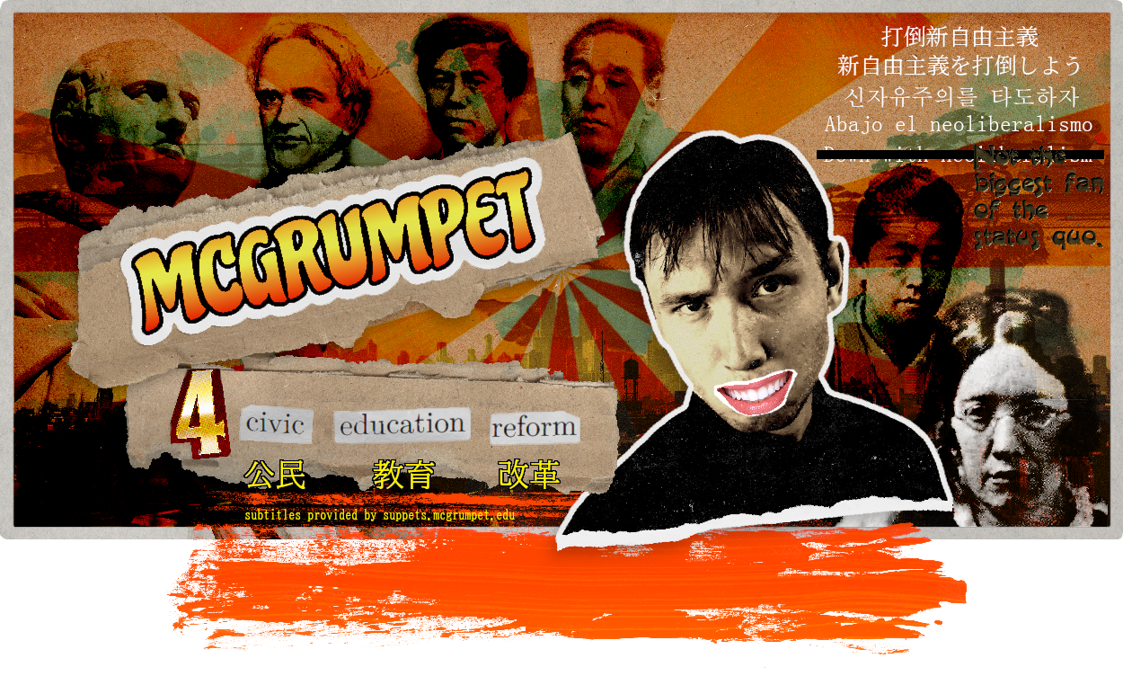 Create a 3D animation that deals with the failure of neoliberal education and neoliberalism in general as a means of promoting civic education reform to a wide population.